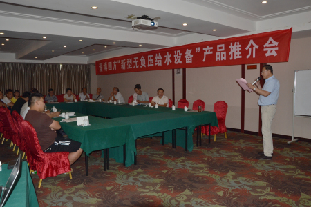 2016年7月16日,淄博四方“新型無負(fù)壓給水設(shè)備”產(chǎn)品推介會(huì)在臨沂市蒙陰縣隆重召開。會(huì)議邀請(qǐng)了臨沂市相關(guān)單位的領(lǐng)導(dǎo)以及各房地產(chǎn)開發(fā)公司的主要客戶蒞臨參加。
